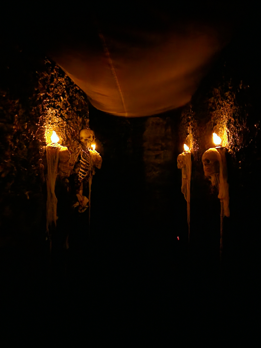 The event was from 4- 6pm and the walk-through was located outside in the parking lot. The total size of the walk through was approximately 18ft by 19ft, and featured 5 separate special effects (including a fully functional and automated drop window which was not manned at the time of filming the walk through).